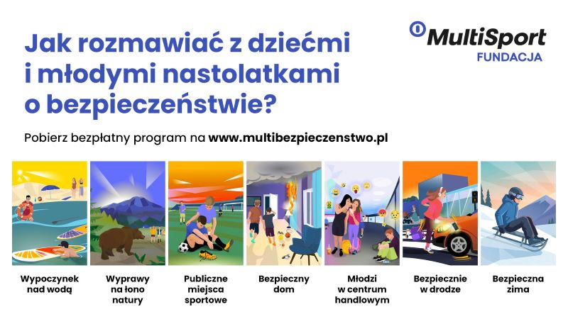 Aby wesprzeć rodziców i nauczycieli w budowaniu świadomość w zakresie bezpieczeństwa Fundacja MultiSport stworzyła bezpłatny, ogólnodostępny program edukacyjny MultiBezpieczeństwo. W ramach programu dostępne jest 7 „lekcji” o bezpieczeństwie, w tym najnowsze zimowe materiały edukacyjne w postaci scenariusza lekcji, prezentacji, schematów angażujących gier i łamigłówek, które skupiają się na wyjaśnieniu niebezpiecznych sytuacji, rozwijają myślenie przyczynowo-skutkowe i uczą dzieci mechanizmów podejmowania decyzji. Tworzone w ramach programu materiały nie odwołują się do zakazów, ale przez pryzmat doświadczeń dzieci i wyjaśnianie konkretnych procesów, pomagają im lepiej rozumieć sytuacje niebezpieczne i utrwalać właściwe zachowania. Materiały edukacyjne zostały opracowane z myślą o dzieciach w wieku 10-14 lat i są dostępne na stronie internetowej www.multibezpieczenstwo.pl.Nie wystarczy przekazać dzieciom listy zagrożeń i zakazów. Konieczne jest tu zrozumienie mechanizmów, wzmocnienie myślenia przyczynowo-skutkowego. Dzieci, które wiedzą, skąd biorą się zagrożenia, podejmują bardziej świadome decyzje – sugeruje Ilona Gregorczyk,